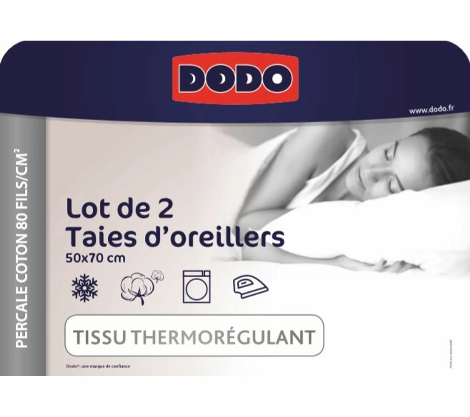 Les deux taies d’oreiller DODO PERCALE ajoutent du confort à vos nuits. Fabriquées dans un coton de 80 fils/cm², elles présentent un tissage serré, doux au toucher et bien résistant. Reconnu par ailleurs pour ses propriétés absorbantes, ce coton de qualité supérieure réduit l’humidité, vous garantissant un sommeil plus sain et plus serein. Adaptées à toutes les saisons, ces deux taies d’oreiller rectangulaires de l. 50 x L. 70 cm s’enfilent facilement sur des oreillers de mêmes dimensions. Simples à entretenir, elles se lavent en machine à 40 °C et restent douces après chaque lavage.