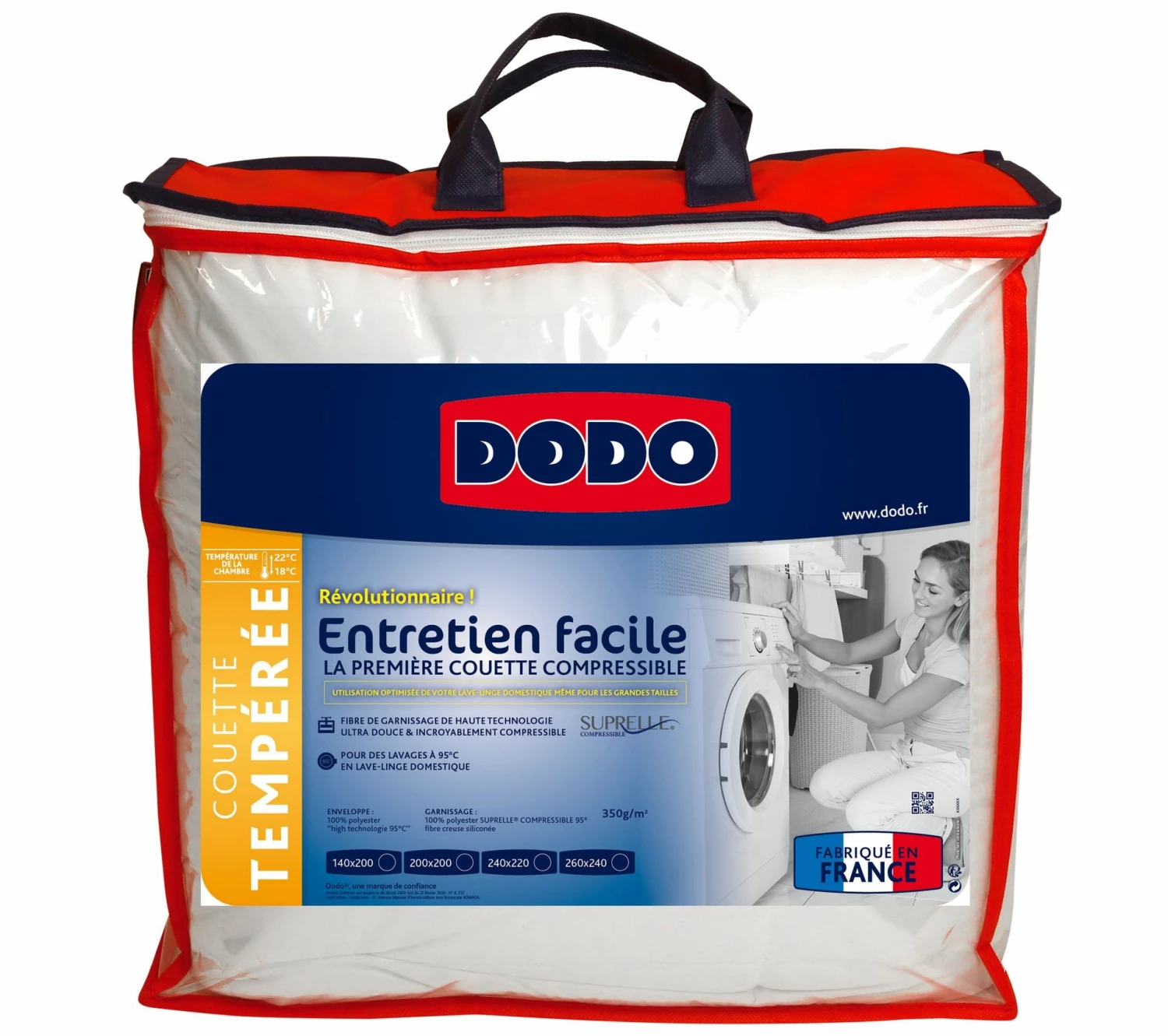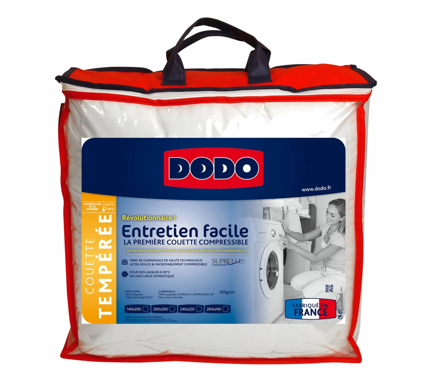 La couette tempérée DODO ENTRETIEN FACILE recouvre votre lit toute l’année ! Elle a l’avantage de s’adapter à chaque saison, se faisant chaude en hiver et plus légère en été. Pour davantage de confort pendant les mois le plus froids, cette couette 240 x 260 cm peut rejoindre un lit king size ou même un couchage queen size, l’idéal pour des moments cocooning. On apprécie aussi son piquage longitudinal et son toucher très doux. Cette couette tempérée est également facile à entretenir grâce à sa haute technologie compressible. Elle peut ainsi être lavée en machine et à la maison, à une température maximale de 95 °C.