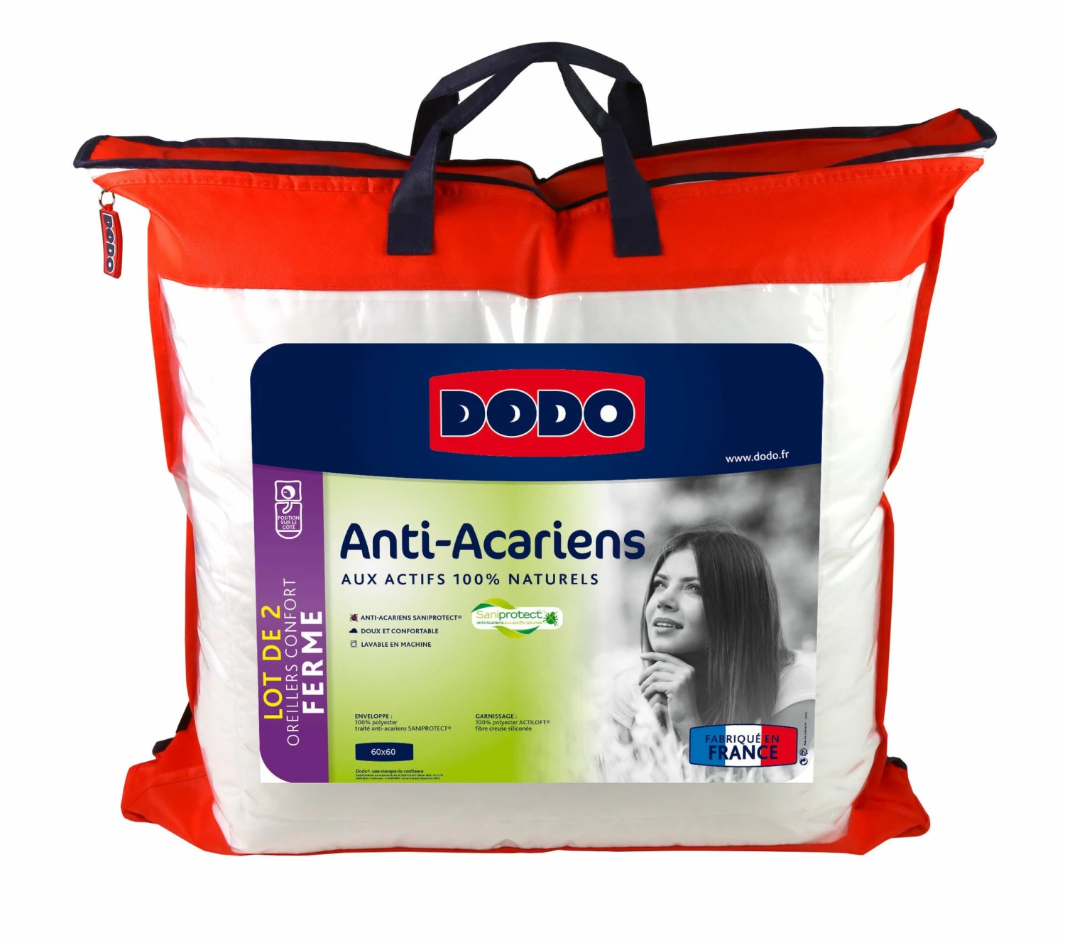 Ce lot de 2 oreillers DODO a été conçu pour apporter un maximum de confort à tous ceux qui dorment sur le côté. Ils offrent un confort ferme. Doux et confortables, ils sont traités contre les acariens et conviennent donc même aux personnes souffrant d’allergies. Ce traitement est réalisé à base d’actifs naturels, dans le respect de l’environnement. Ce lot de 2 oreillers se dévoile dans des dimensions standard de 60 x 60 cm. Fabriqué en France, ce lot de 2 oreillers 60 x 60 cm est livré dans une housse zippée pourvue d’une poignée pour faciliter le stockage et le transport.