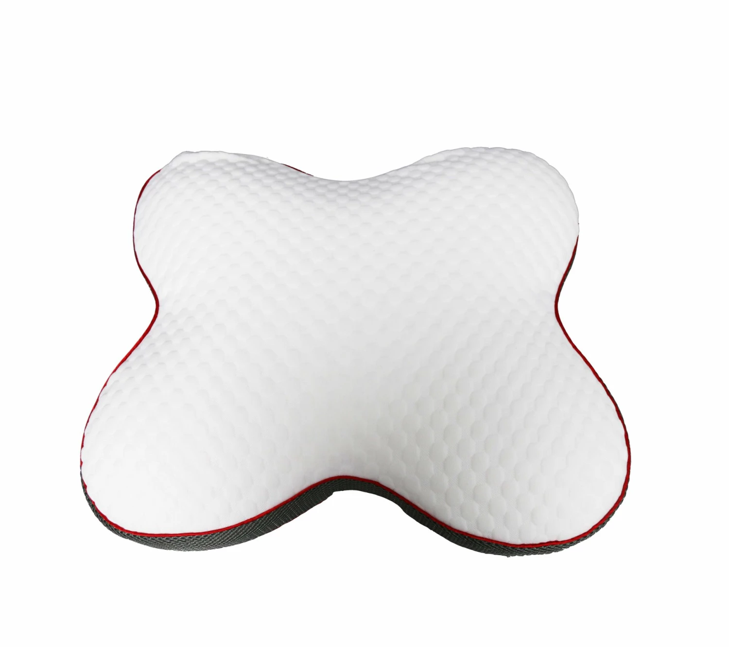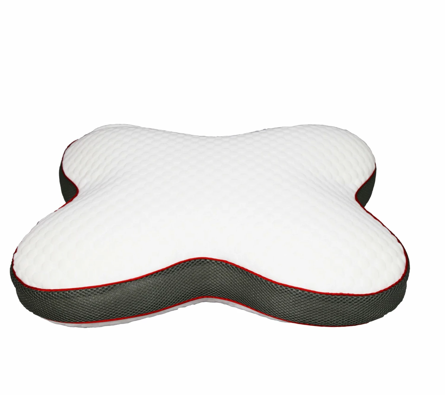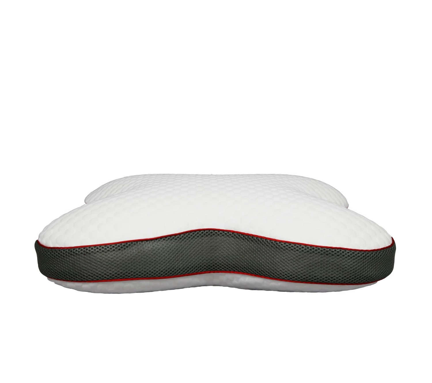 Cet oreiller ergonomique de 40 x 55 cm surprend par sa forme originale de papillon. Son enveloppe 100 % polyester est complétée par une sous-taie 100 % polyester jersey. Vous apprécierez la finition double passepoil de couleur rouge et la bande 3D grise de cet oreiller ergonomique blanc.