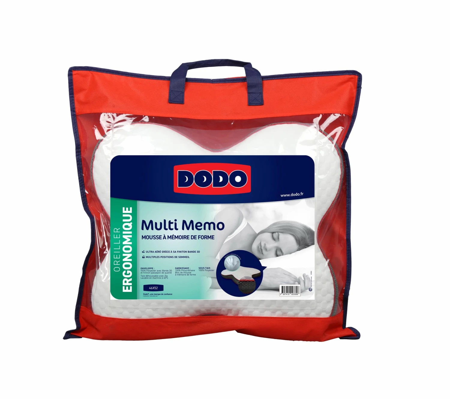 Laissez-vous séduire par l’oreiller ergonomique Dodo Multi Memo 2. Cette marque française figure parmi les leaders européens de la production d’articles de literie. Ce produit de qualité assure un maintien supérieur de la nuque et des cervicales pour un sommeil réparateur. Le garnissage se compose d’un bloc de mousse 100 % polyuréthane à mémoire de forme. Vous profitez d’un niveau de confort ferme, adapté à toutes les positions de couchage. Votre nouvel oreiller ergonomiqueest ultra-aéré grâce à sa finition bande 3D. Il est possible de retirer la housse grâce au zip intégré pour la laver en machine à 40 °C.