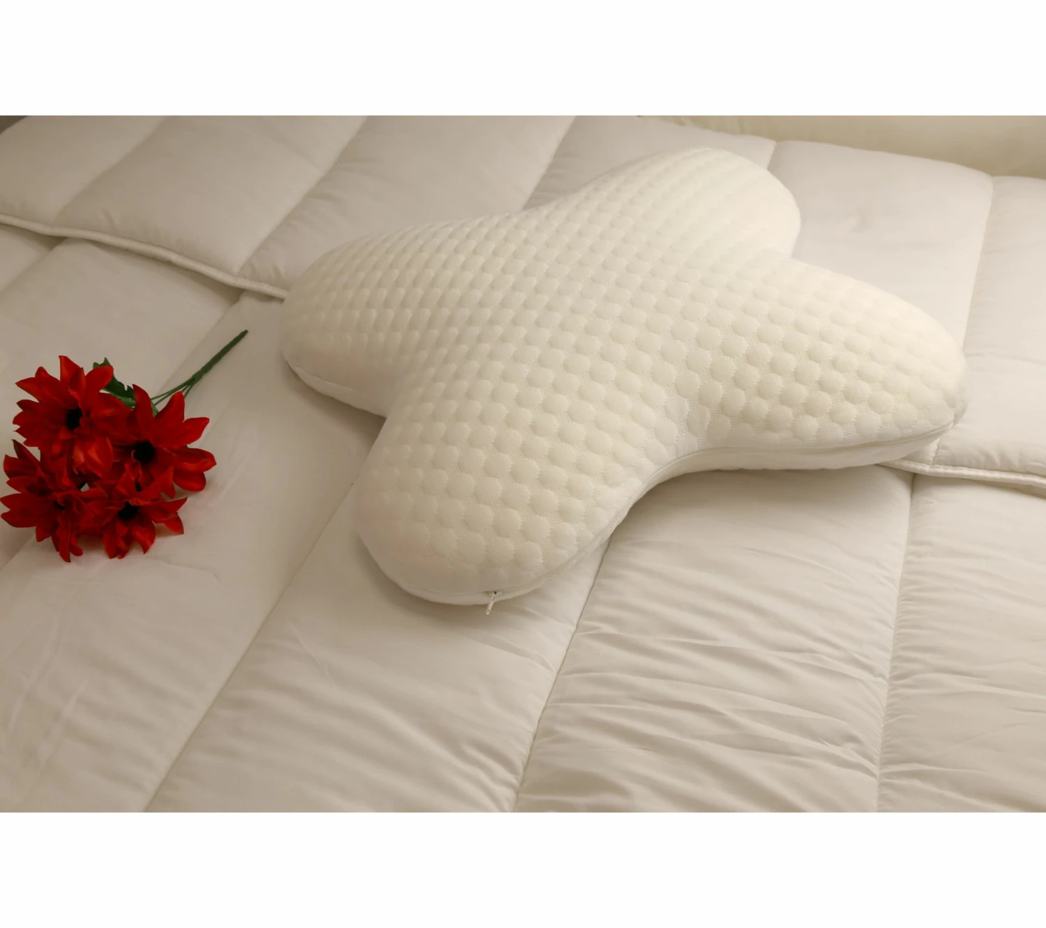 Cet oreiller ergonomique possède une forme en trèfle ce qui lui permet de mieux s’adapter aux besoins de confort d’une personne. Il est composé d’un bloc de mousse en polyuréthane. Sa taie extérieure est fabriquée dans un mélange de polyester et de viscose tandis que sa housse intérieure est en coton respirant.